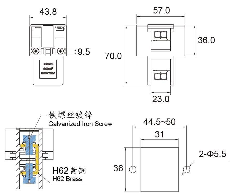 材质:PBT/合金铜,额定电流:50A~300A,额定电压:600V DC Ma...