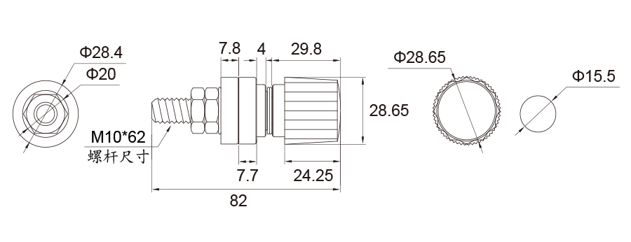 接线柱是一种具有固定连接功能的金属柱,主要用于电气线路中的连接。它通常被安装在电路板、设备面板或其他需要电气连接的地方,用于连接电线、电缆或其他电气元件。接线柱通过其螺纹或夹持功能,确保电气连接的稳定性和可靠性。