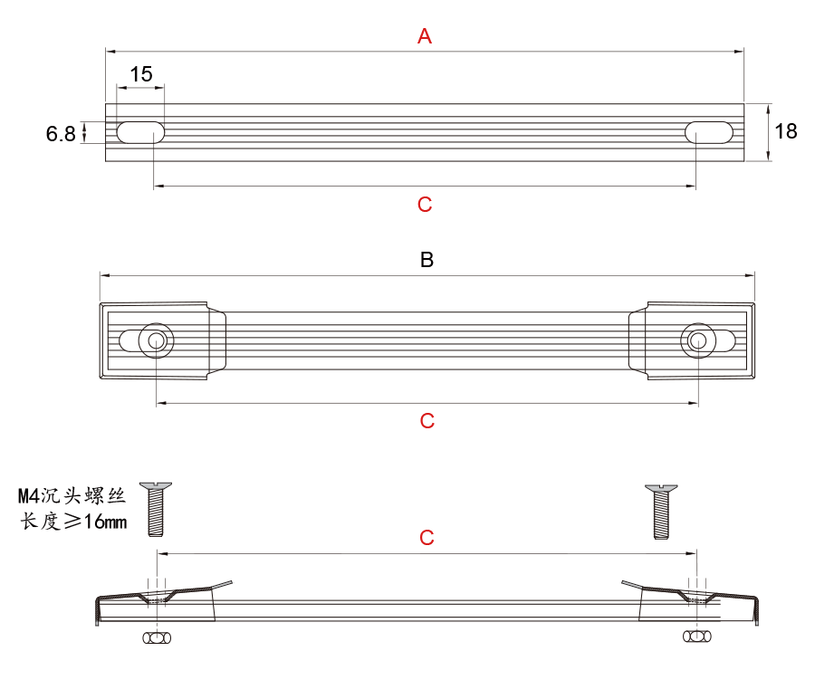 长度:155.3~205.3mm,宽度:18mm,安装孔距:120~170mm±...